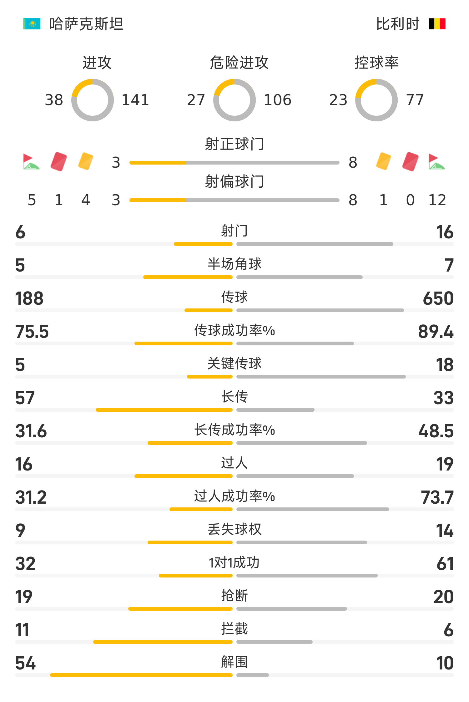 哈萨克斯坦首发阵容:15-阿纳别科夫、11-沃罗格夫斯凯、6-卡西姆、3-阿里普、5-凯罗夫、20-奥拉佐夫(90’23-卡萨布拉特)、16-塔帕洛夫(90’13-朱可夫)、10-萨莫罗多夫(80’18-卡拉曼)、9-切斯诺科夫、7-肯哲贝克(57’4-阿希尔贝克)、19-萨特佩夫(56’17-斯维里多夫)