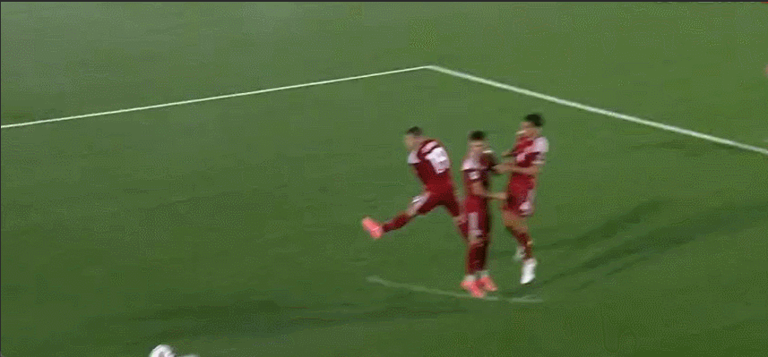 45+4’阿季奇主罚自由球起右脚轰门,皮球高出横梁飞出端线