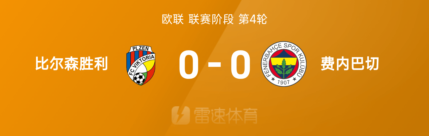 6686体育11月07日讯 25/26赛季欧联联赛事阶段第4轮,比尔森胜出局0-0互交白卷闷平费内巴切。