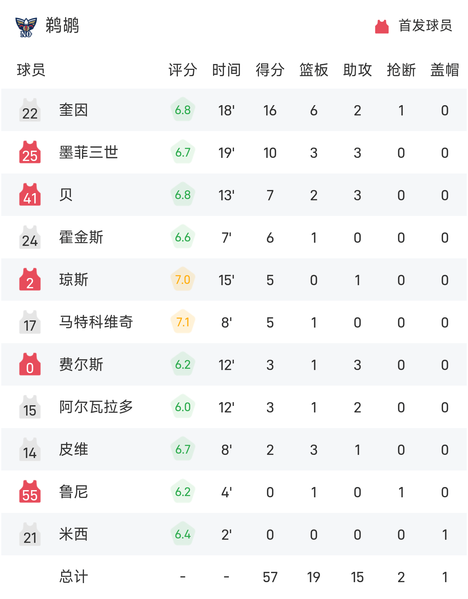 NBA半场:奎因16+6,杨瀚森暂未登场,开拓者57-59鹈鹕