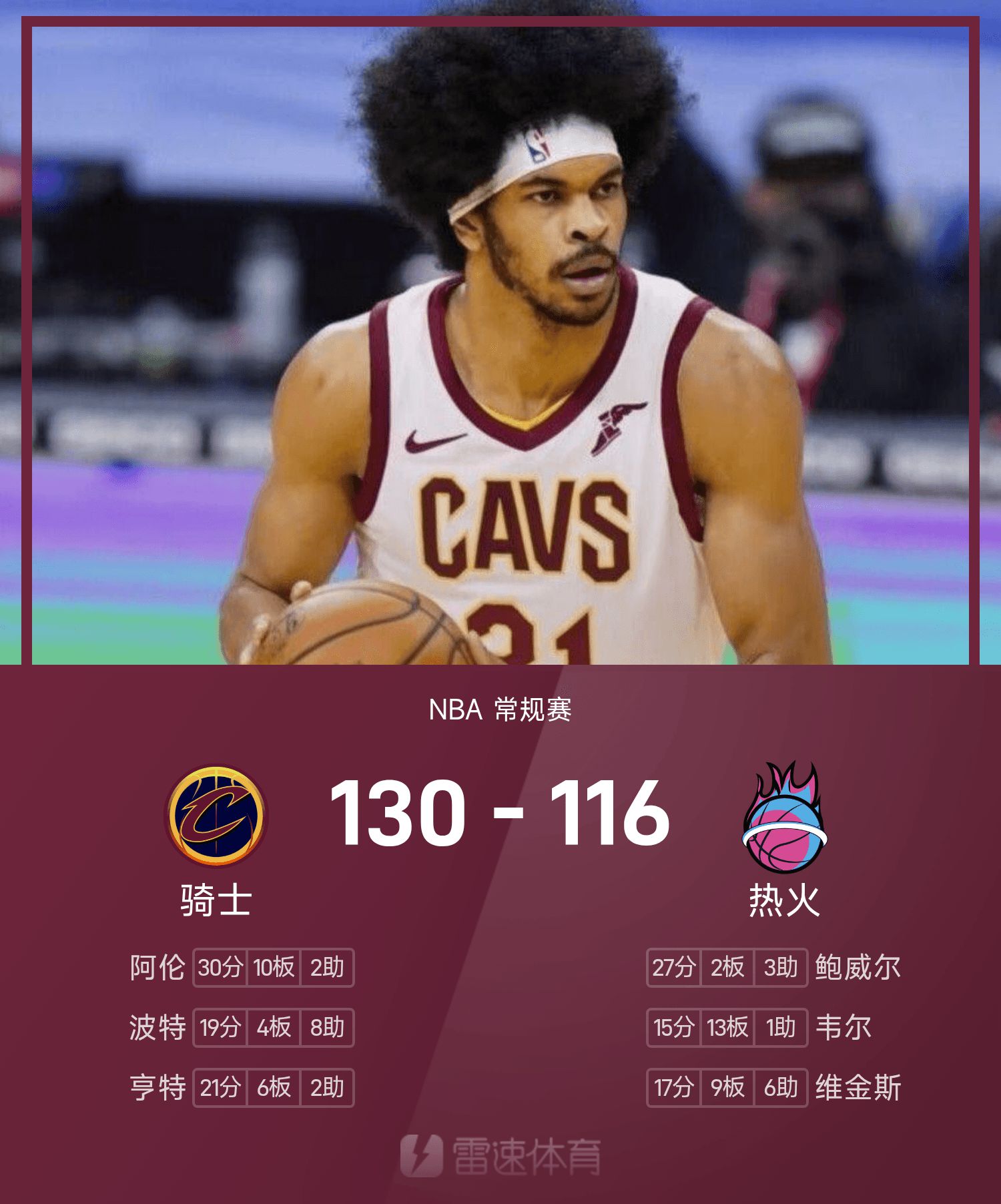 骑士130-116热火