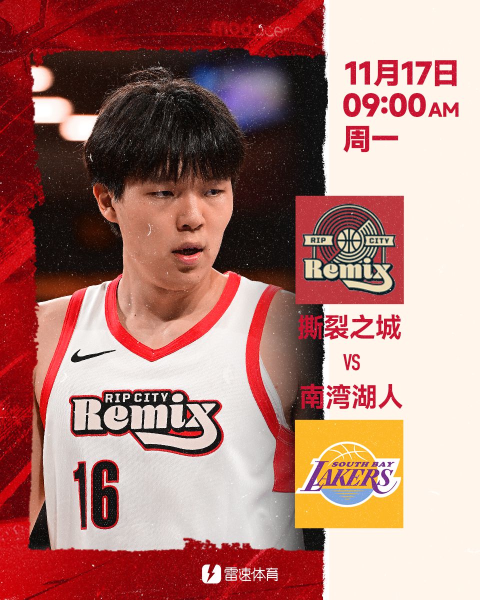 6686体育11月16日讯 明日,NBA-G联赛事撕裂之城混音将对阵南湾湖人,开拓者16号秀杨瀚森也即将迎来自己发展联盟的第二场竞赛。