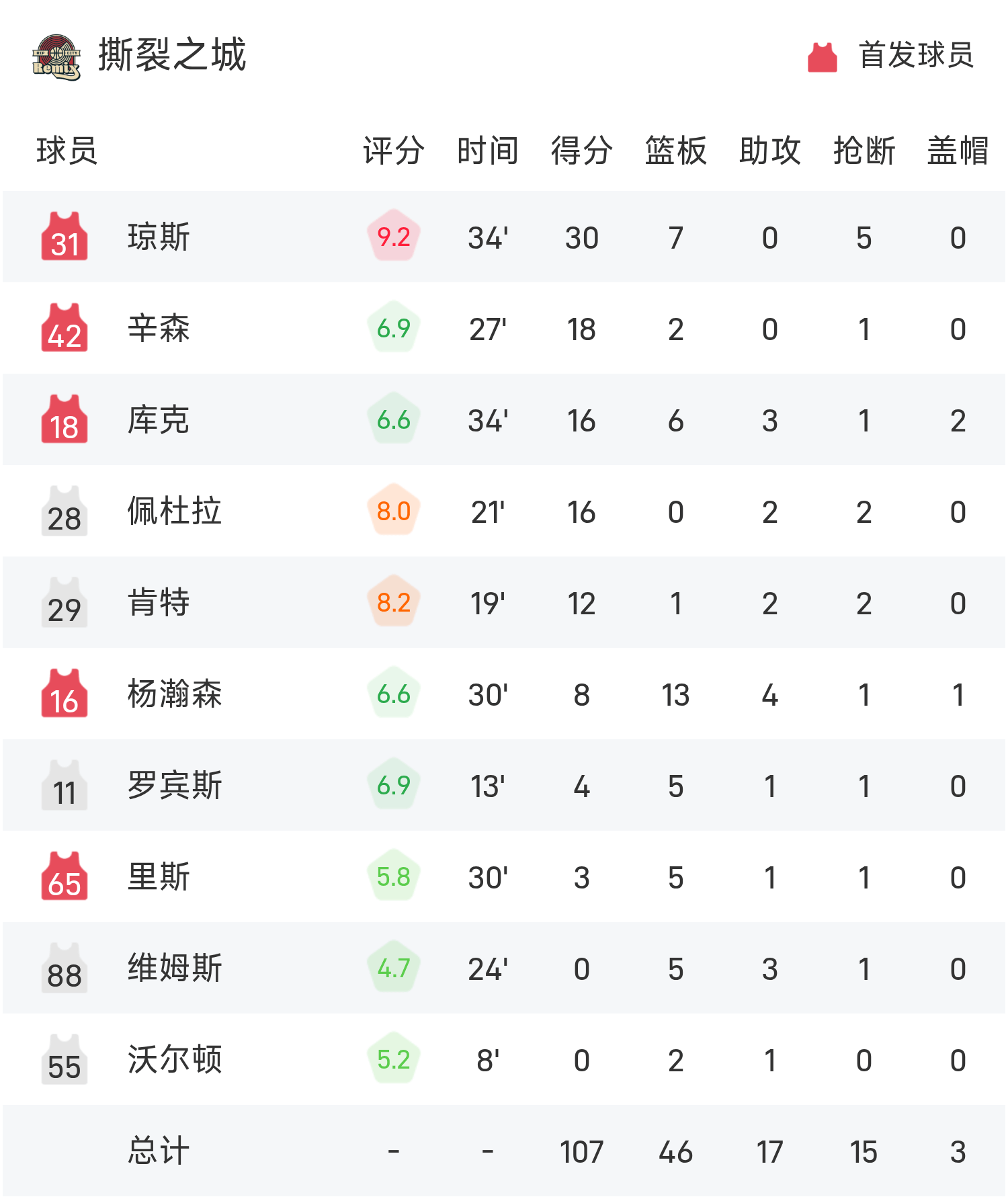6686体育11月15日讯 25/26赛季NBA G联赛事,山谷太阳对阵撕裂之城。双方全场战罢,山谷太阳104-107不敌撕裂之城。琼斯砍下全场最高的30分7板,杨瀚森8分13抢篮板,率领撕裂之城胜利逆转对手。